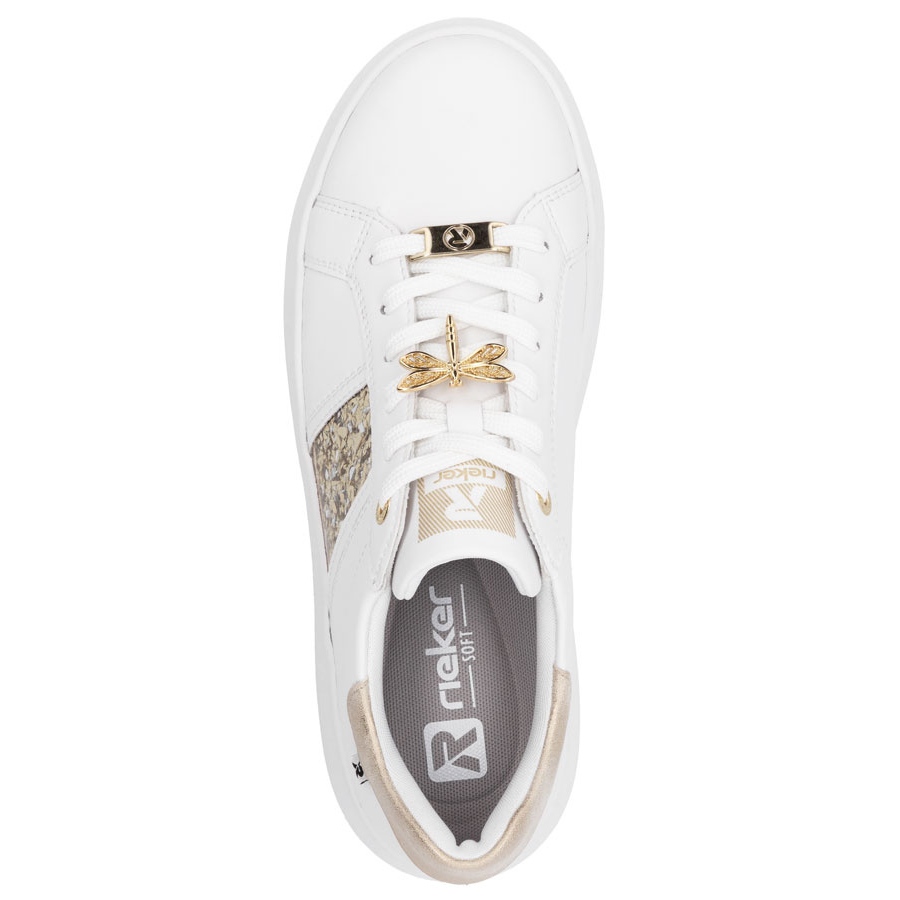 Dettagli: Sneaker in pelle da donna sulla piattaforma bianca Rieker 1202-82