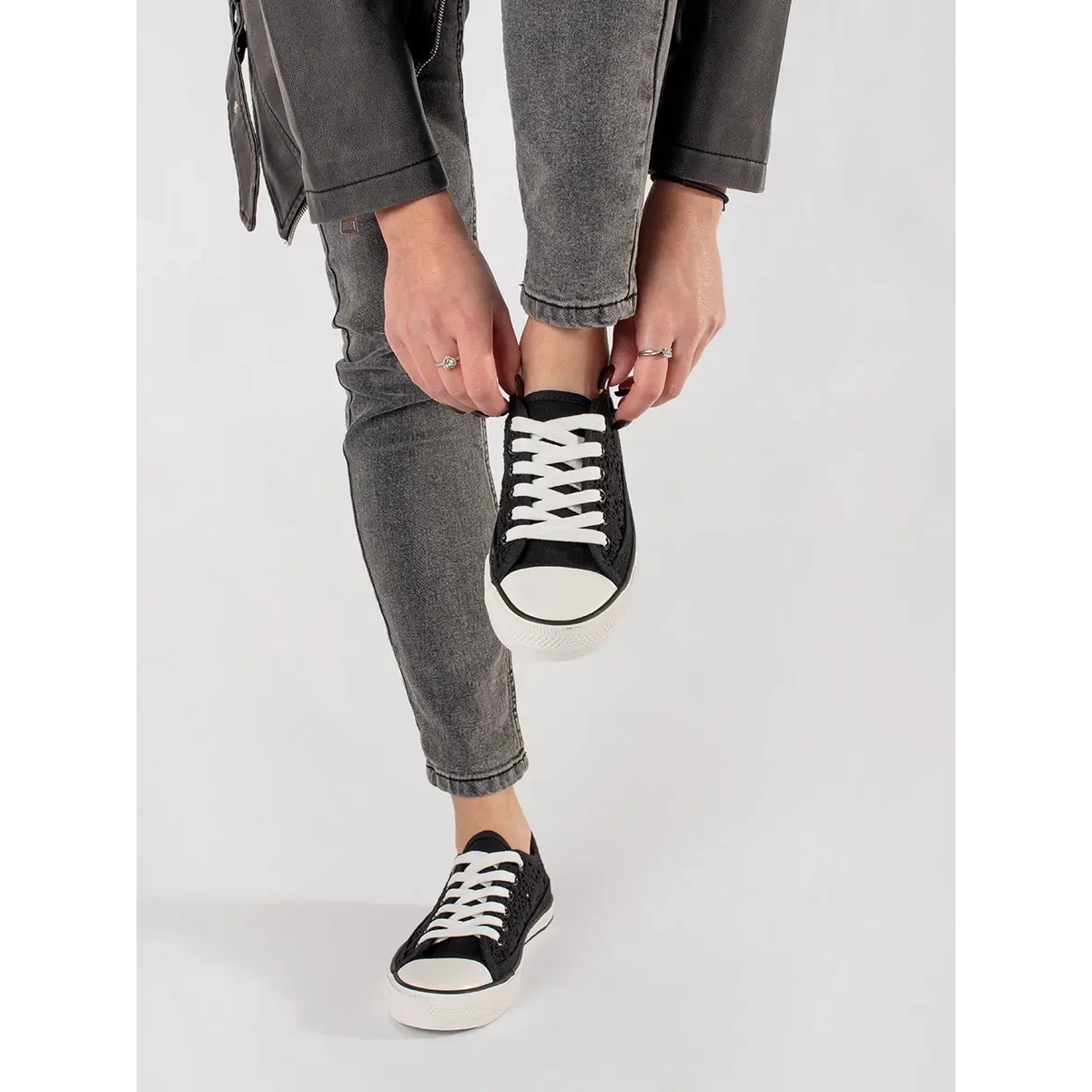 Le sneaker legate a Black Openwork sono la combinazione perfetta di comfort e stile, che certamente attirerà ogni donna moderna. Queste scarpe da donna uniche combinano uno stile sportivo con un design casual, che le rende un'ottima scelta quotidianamente, indipendentemente dall'occasione.