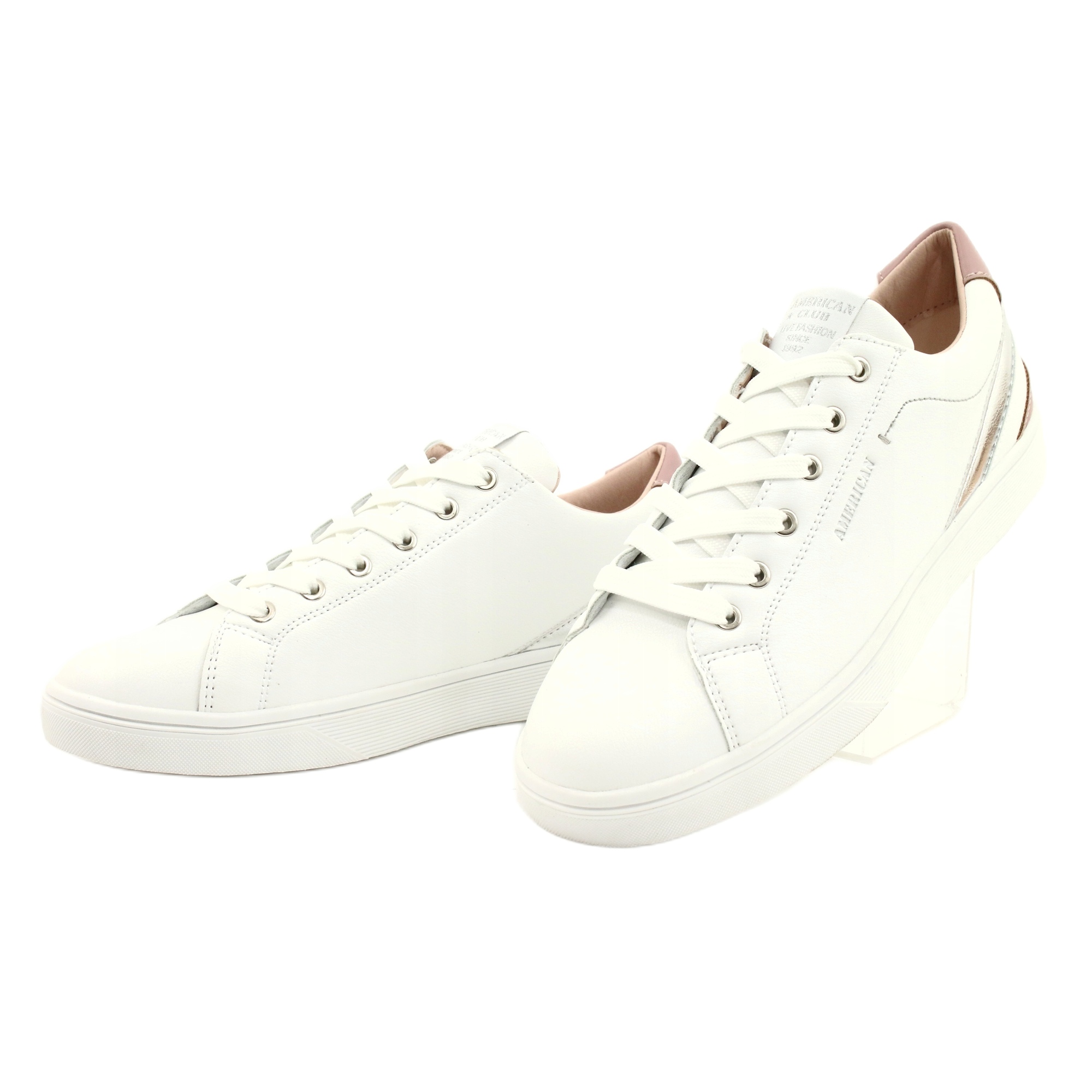 Le sneaker classiche e alla moda American Club RH12 sono una proposta per ogni ragazza che apprezza il comfort e il design contemporaneo. Realizzati in pelle ecologica con eleganti inserti in argento e polvere, sembrano freschi e universalmente - ideali per le stilizzazioni quotidiane.