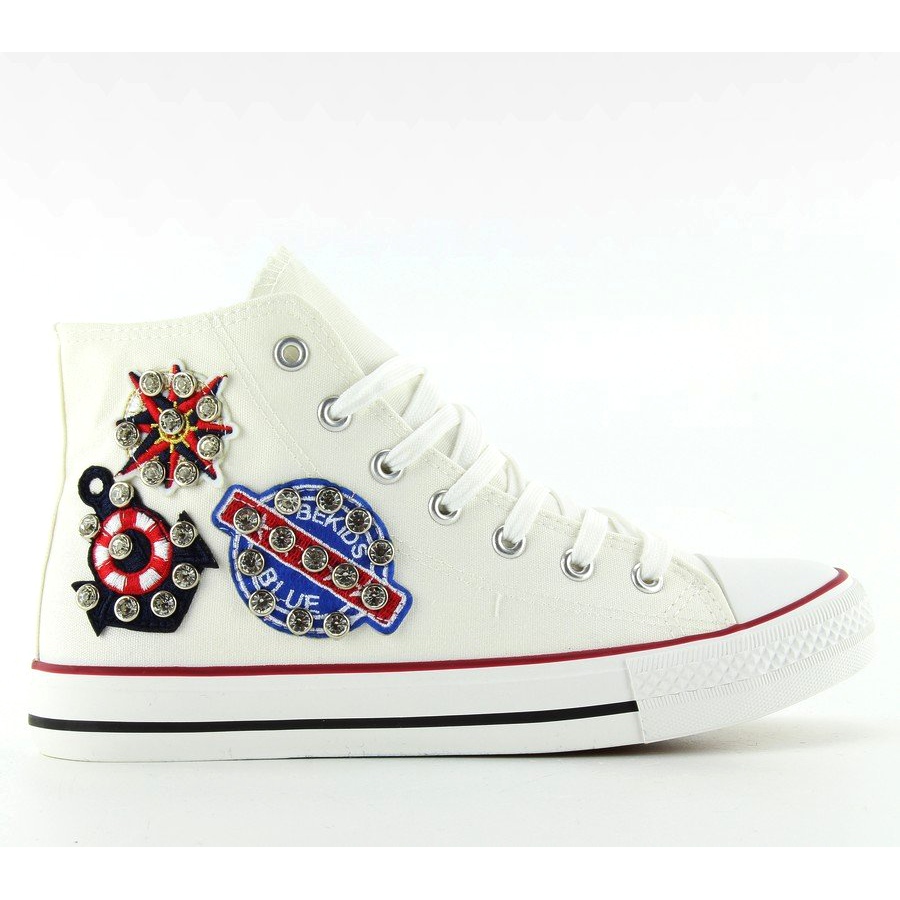 Sneakers alla caviglia con pietre BL101P Bianche bianco