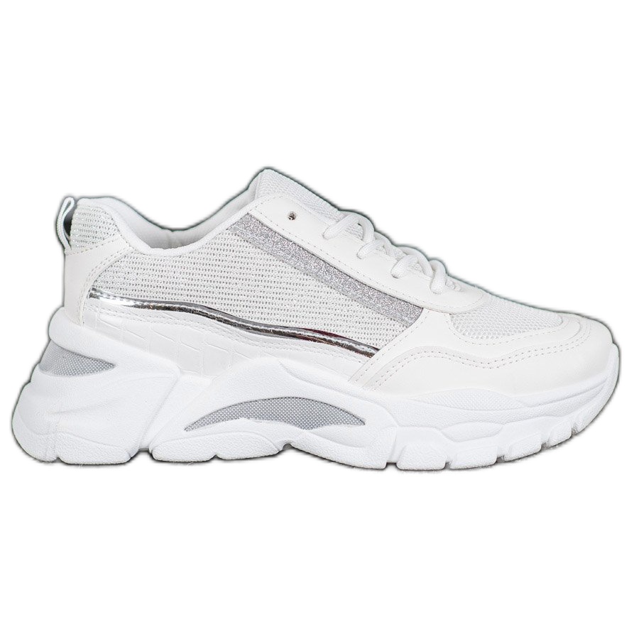 SHELOVET Eleganti sneakers con glitter in bianco sono una proposta ideale per le donne che vogliono unire l'eleganza con uno stile sportivo e alla moda. Queste scarpe uniche deliziano con dettagli argentati e un'accattivante finitura glitterata, che conferisce a ogni stile un carattere unico.