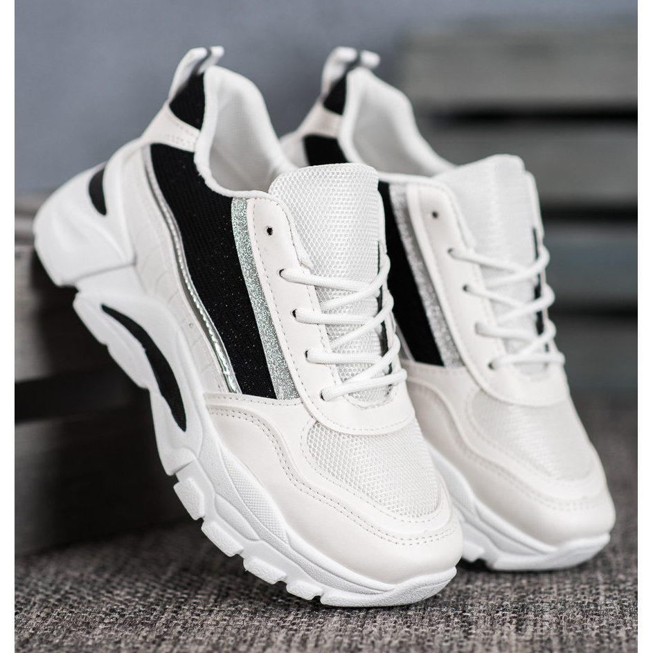 Le eleganti sneakers SHELOVET con glitter sono la scelta perfetta per ogni donna che vuole unire il comfort ad un look alla moda. Le calzature, disponibili nei classici colori bianco e nero, si adattano perfettamente alle tendenze della stagione autunno/inverno, e il suo stile sportivo e fashion le rende perfettamente abbinabili a una varietà di stili.
