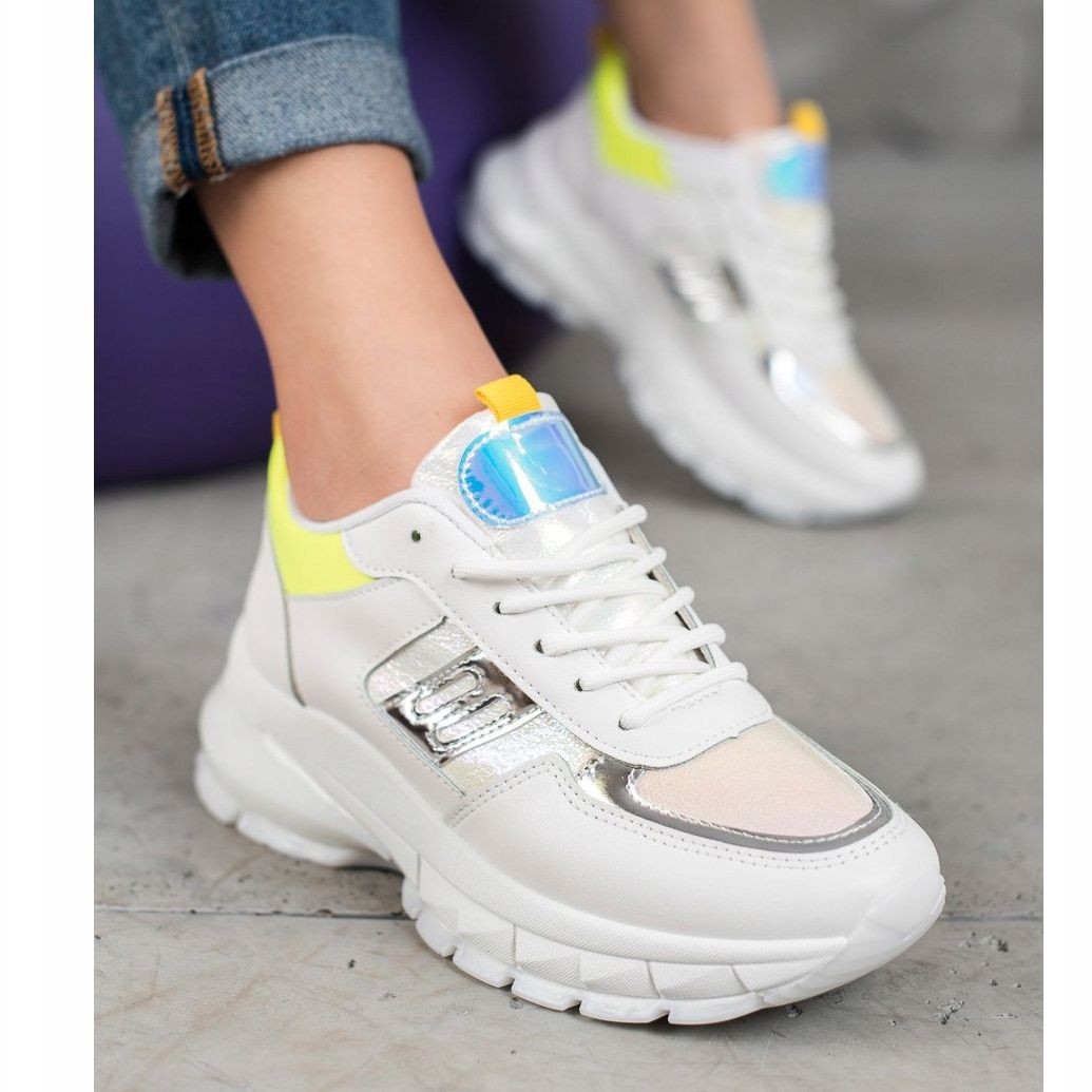 Dettagli: SHELOVET Sneakers alla moda in ecopelle bianco argento giallo