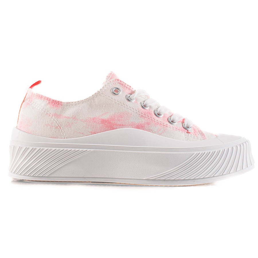 Grazie all'allacciatura puoi adattarli ai tuoi gusti e preferenze individuali, il che li rende un capo guardaroba universale per la primavera e l'estate. Perfetti per l'uso quotidiano, funzioneranno bene sia negli stili sportivi che in quelli casual. Il loro colore bianco minimalista con delicati accenti rosa permette loro di essere facilmente abbinati a vari outfit.