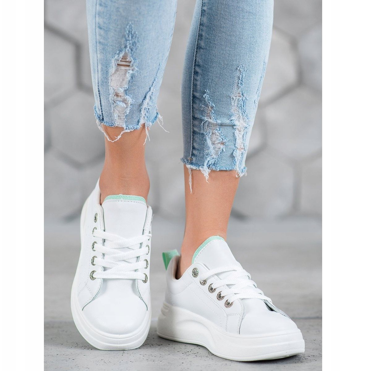 Presentiamo le sneakers con plateau alla moda SHELOVET in un classico colore bianco: la scelta perfetta per la primavera e l'estate! Queste eleganti scarpe sportive da donna combinano non solo funzionalità, ma anche un look alla moda, che le rende un complemento perfetto per qualsiasi stile casual.