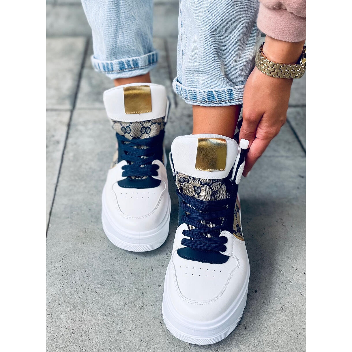 Scopri le scarpe sportive alte alla moda Axel Navy in bianco con accenti multicolori che delizieranno ogni amante dello stile e del comfort. Queste scarpe da donna combinano le ultime tendenze e funzionalità, offrendo un taglio con plateau alto che aggiungerà carattere a qualsiasi stile.