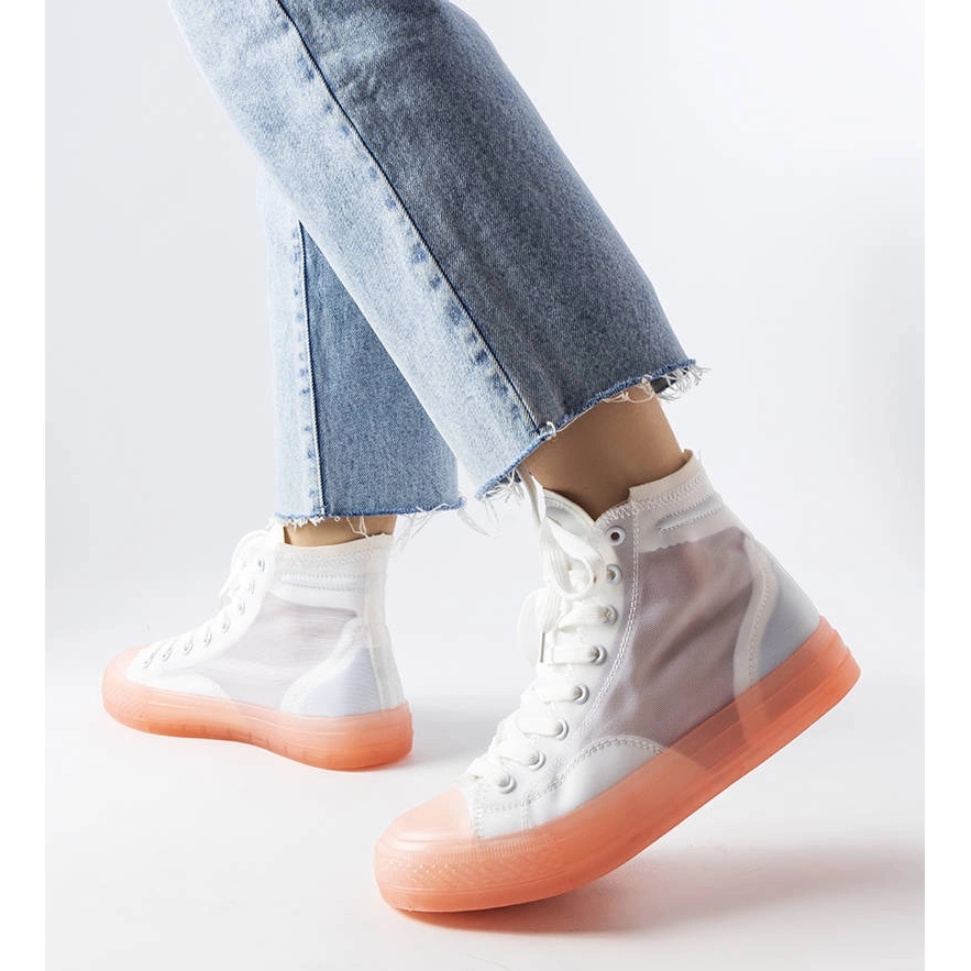 Le sneaker estive Nantere, eleganti combinano un classico e un accento femminile grazie alla tomaia bianca e una suola rosa. Alto, pizzo -up, con un naso rotondo - perfetto per le stilizzazioni urbane di tutti i giorni.