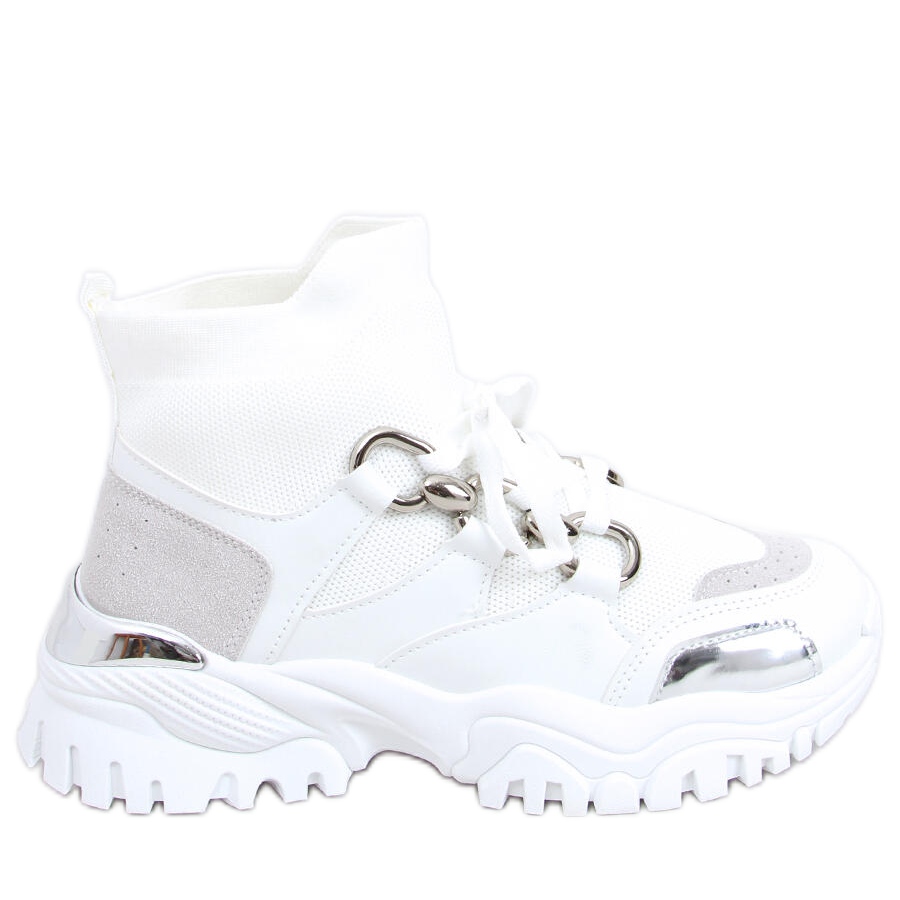 Le scarpe sportive alte Tergo White sono la scelta perfetta per le donne moderne e attive che apprezzano l'aspetto alla moda e il comfort. Il loro design estremamente elegante attira l'attenzione grazie alla combinazione dei colori bianco, argento e grigio, arricchiti da eleganti accenti dorati. Queste scarpe alte con suola spessa non solo si distinguono dagli altri modelli, ma offrono anche un'eccellente stabilità e comfort da indossare.