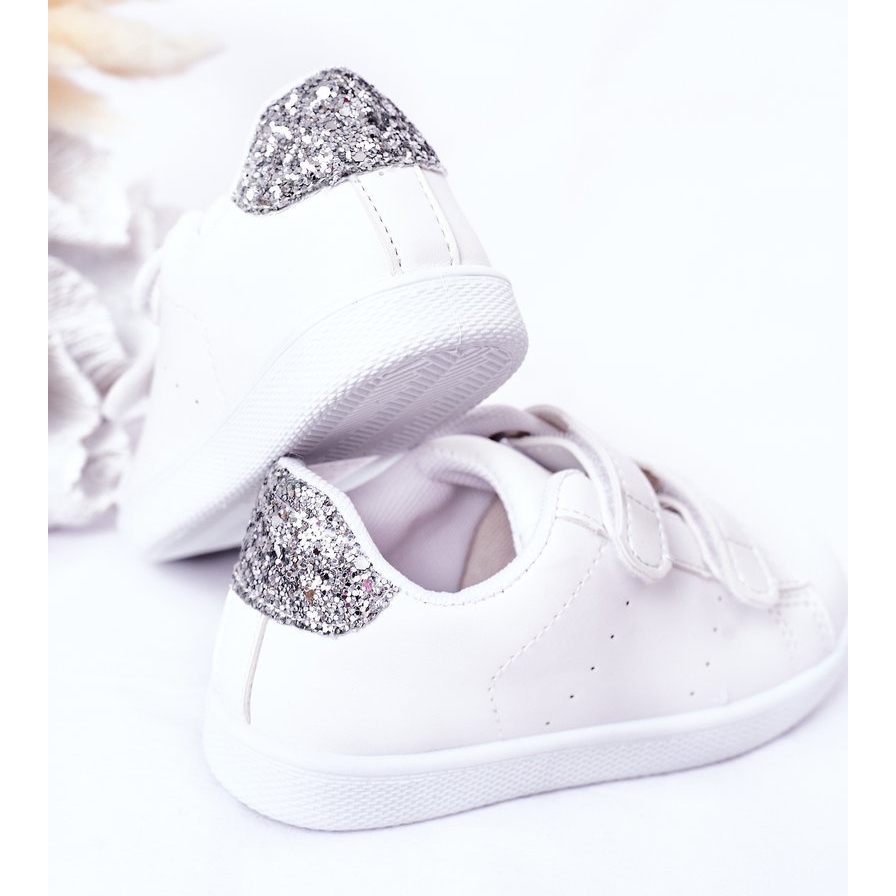 Sneakers Bambini Con Velcro Bianche e Argento Cute Girl bianco