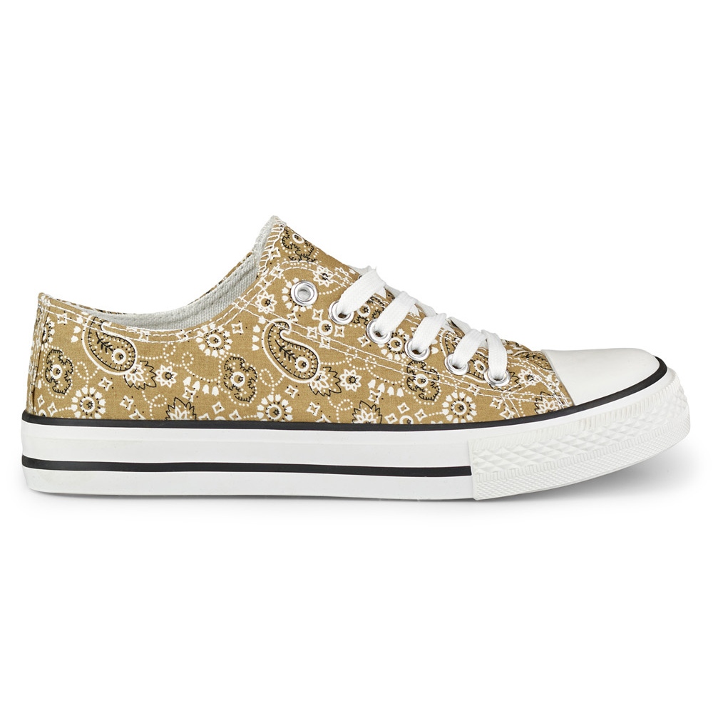 Il loro colore beige e il mix di fantasie si abbinano perfettamente alle tendenze attuali, mentre la punta tonda e la suola piatta garantiscono comfort ad ogni passo. Le sneakers sono state progettate per l'uso quotidiano, il che le rende calzature perfette per passeggiare, fare shopping o incontrare gli amici.