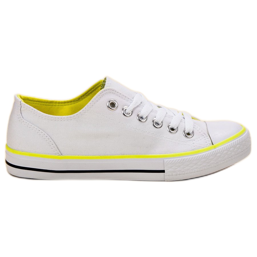 Scopri stile e comfort affidabili con le classiche sneakers SHELOVET bianche, perfette per qualsiasi outfit quotidiano. Queste scarpe stringate da donna combinano un minimalismo elegante con un accento unico: una striscia gialla che decora la tomaia e l'interno della scarpa, donando loro un look accattivante.