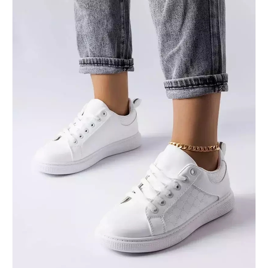 Le sneakers bianche con goffratura Dreux di BM sono la scelta perfetta per le donne che vogliono unire la comodità ad un look alla moda. Realizzate in ecopelle liscia, queste sneakers attirano l'attenzione con dettagli discreti come il tallone decorativo e la goffratura all'esterno. Il loro design minimalista li rende adatti sia a stili casual che eleganti.