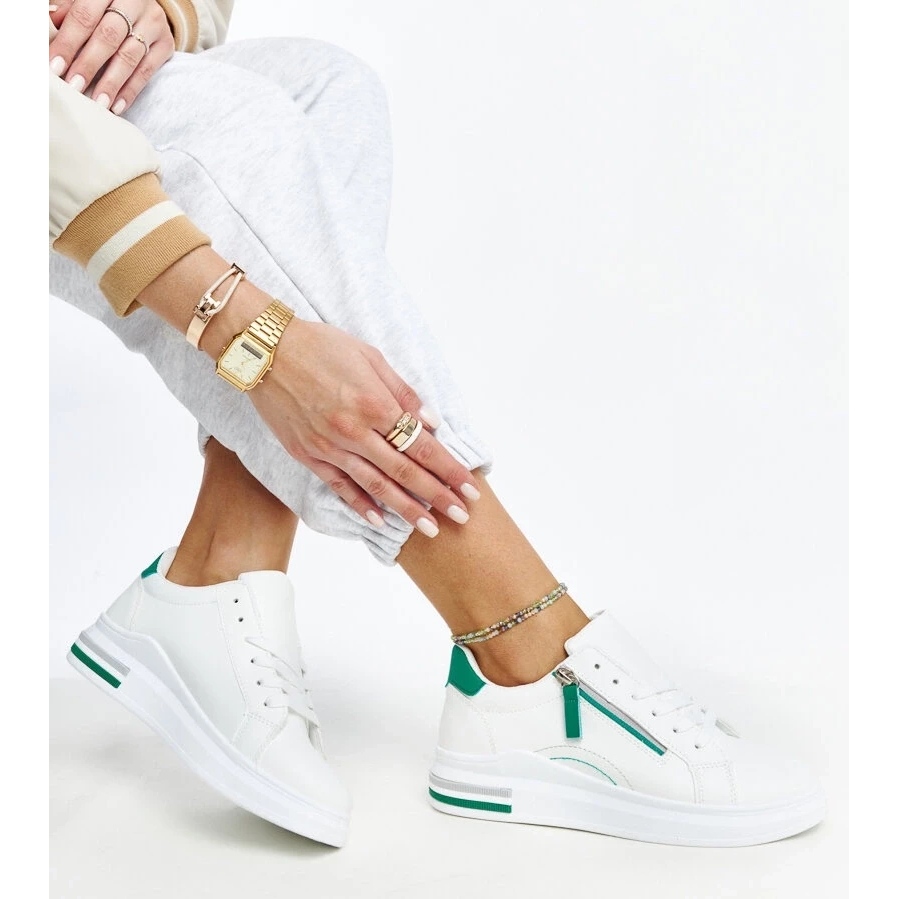 Sneaker bianche con inserti di Anaunia verde da D/GMR è la scelta perfetta per le donne che apprezzano lo stile e il comfort. Queste sneaker si distinguono non solo per design alla moda e minimalista, ma anche con l'alta qualità dei materiali utilizzati. Si adattano fedelmente alla gamba, garantendo il conforto di indossare tutto il giorno.