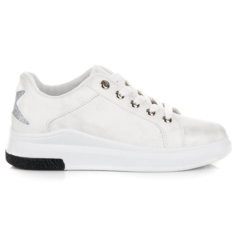 Le sneakers bianche con stella sono la scelta perfetta per le donne che vogliono unire lo stile sportivo con un pizzico di originalità. Il design classico in un elegante colore bianco è stato arricchito con un'applicazione a stella color argento, che dona loro carattere e li distingue dagli altri modelli. Realizzate in pelle ecologica di alta qualità, queste sneakers seguono la tendenza alla moda dell'eleganza sportiva, che le rende il complemento perfetto per molti stili quotidiani.