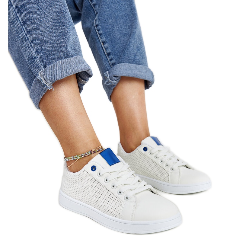 Il modello semi -colorato bianco con accenti blu fa parte delle ultime tendenze, offrendo un look fresco e leggero che ravviverà qualsiasi abito primaverile. Realizzati in pelle ecologica e materiale tessile, combinano l'estetica e si prendono cura dell'ambiente. Il taglio basso della scarpa li rende adatti sia per i jeans che per gli abiti ariosi, aggiungendo ogni stilizzazione dei peccati della moda.
