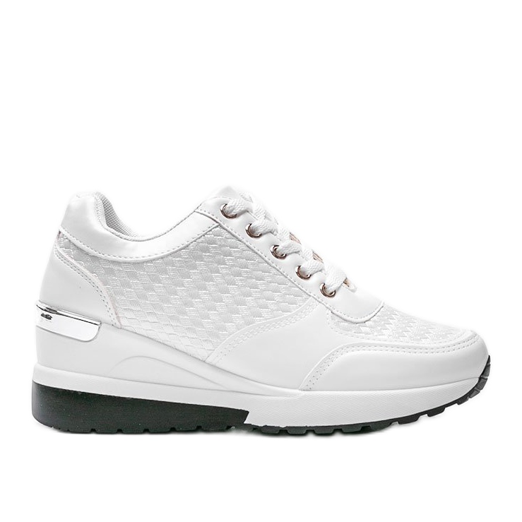 Queste sono le sneakers con zeppa Mara bianche lucide: la scelta perfetta per le donne moderne che apprezzano lo stile e il comfort! Queste scarpe uniche progettate dal marchio Inna uniscono eleganza e carattere casual. Realizzate in pelle ecologica di alta qualità, le sneakers attirano l'attenzione con una goffratura discreta e lucida e un accattivante inserto metallico sul retro della suola.