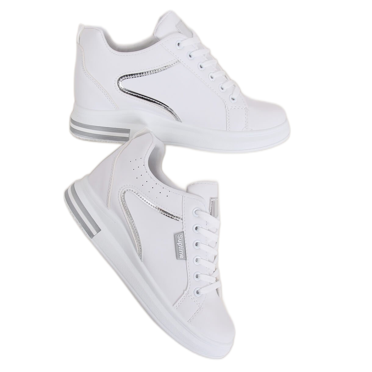 Le sneakers bianche con zeppa NB337 Silver sono la scelta perfetta per le donne che apprezzano la moda e il comfort allo stesso tempo. Queste scarpe uniche sono caratterizzate da una zeppa nascosta alta 6,5 cm, che non solo aggiunge qualche centimetro, ma modella anche perfettamente la figura. Il colore bianco universale li fa abbinare perfettamente a vari stili, e gli inserti colorati e olografici a contrasto conferiscono loro un carattere unico.