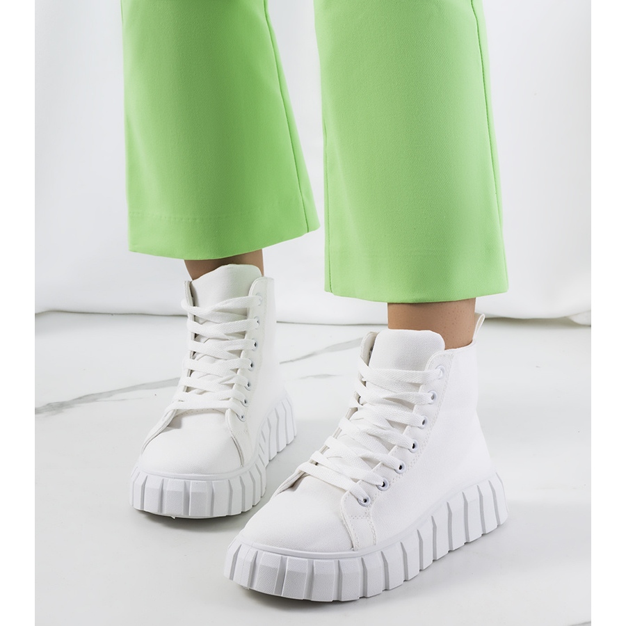 Presentiamo le sneakers bianche con plateau Horizo del marchio BM, che diventeranno un elemento indispensabile del tuo guardaroba estivo. Questo modello è caratterizzato da un taglio alto e alla moda che aggiungerà un carattere unico a qualsiasi stile. Grazie alla solida piattaforma di quattro centimetri otterrai non solo comfort, ma anche un look unico.