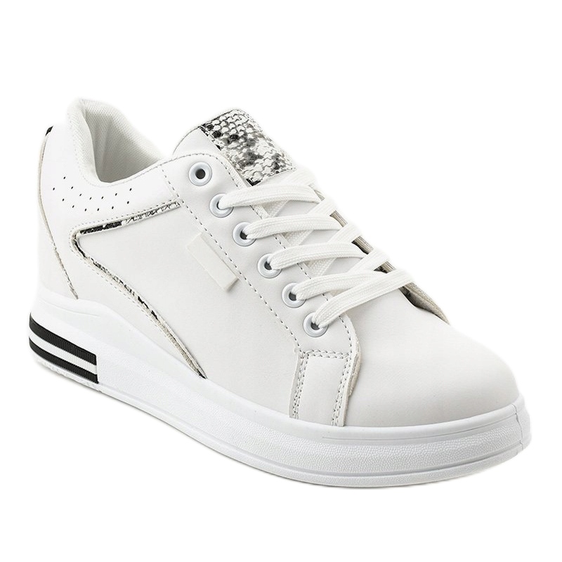 Le sneakers bianche con zeppa SC12 sono la scelta perfetta per le donne che apprezzano il comfort e un look alla moda. Queste scarpe alla moda si distinguono per gli eleganti inserti con motivo a pelle di serpente, che conferiscono loro un carattere unico. Grazie a questo rappresentano un'ottima base per molti stili diversi, dai completi casual al look sportivo.