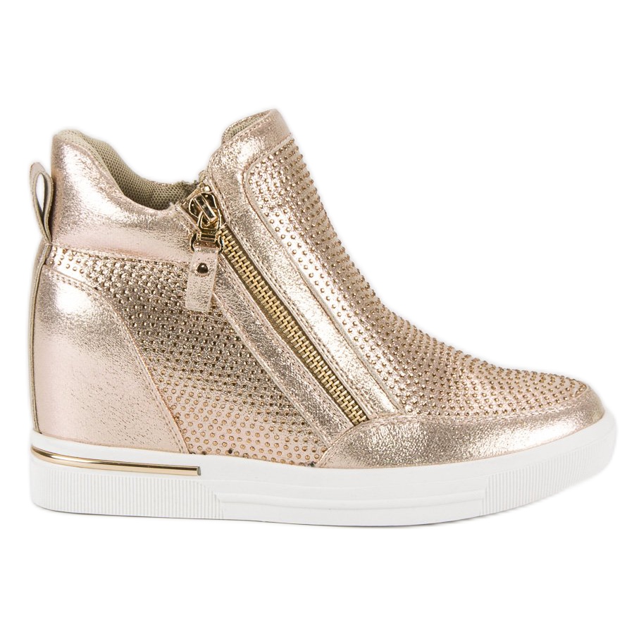 Per una donna elegante che vuole mantenere il suo stile unico anche negli stili più sportivi, le sneakers con zip gialle e dorate sono la scelta perfetta. Queste scarpe originali si distinguono non solo per la comodità, ma anche per il design unico. Decorate con delicati cristalli e realizzate in pelle ecologica di alta qualità, queste sneakers deliziano con la loro estetica e l'accurata lavorazione.