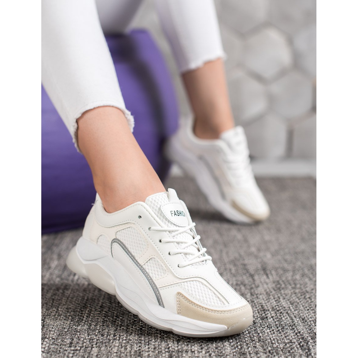 Il prodotto è disponibile in un bellissimo colore bianco e il materiale superiore è in pelle ecologica, che li rende non solo eleganti, ma anche rispettosi dell'ambiente. Scegliere delle sneakers alla moda bianche con glitter è un'ottima decisione per ogni donna alla moda.