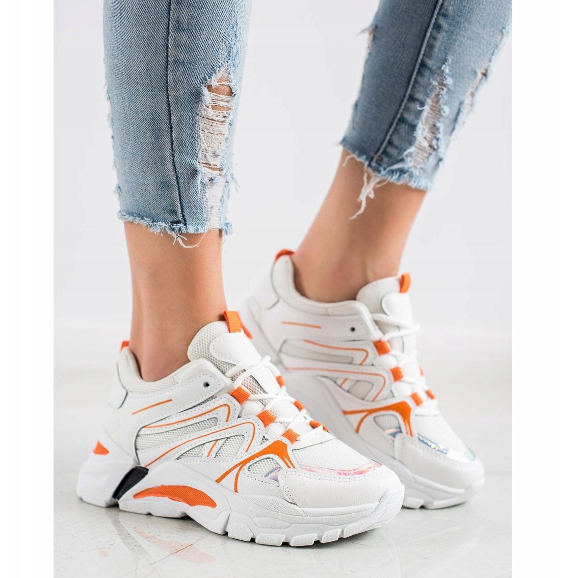 Le sneakers SHELOVET in bianco/arancione sono la scelta perfetta per ogni stagione, dalla primavera all'inverno. Il loro design sportivo e alla moda li rende facilmente adattabili a vari stili, aggiungendo loro carattere. Possano le tue giornate essere piene di stile e comfort con questo modello unico di SHELOVET!