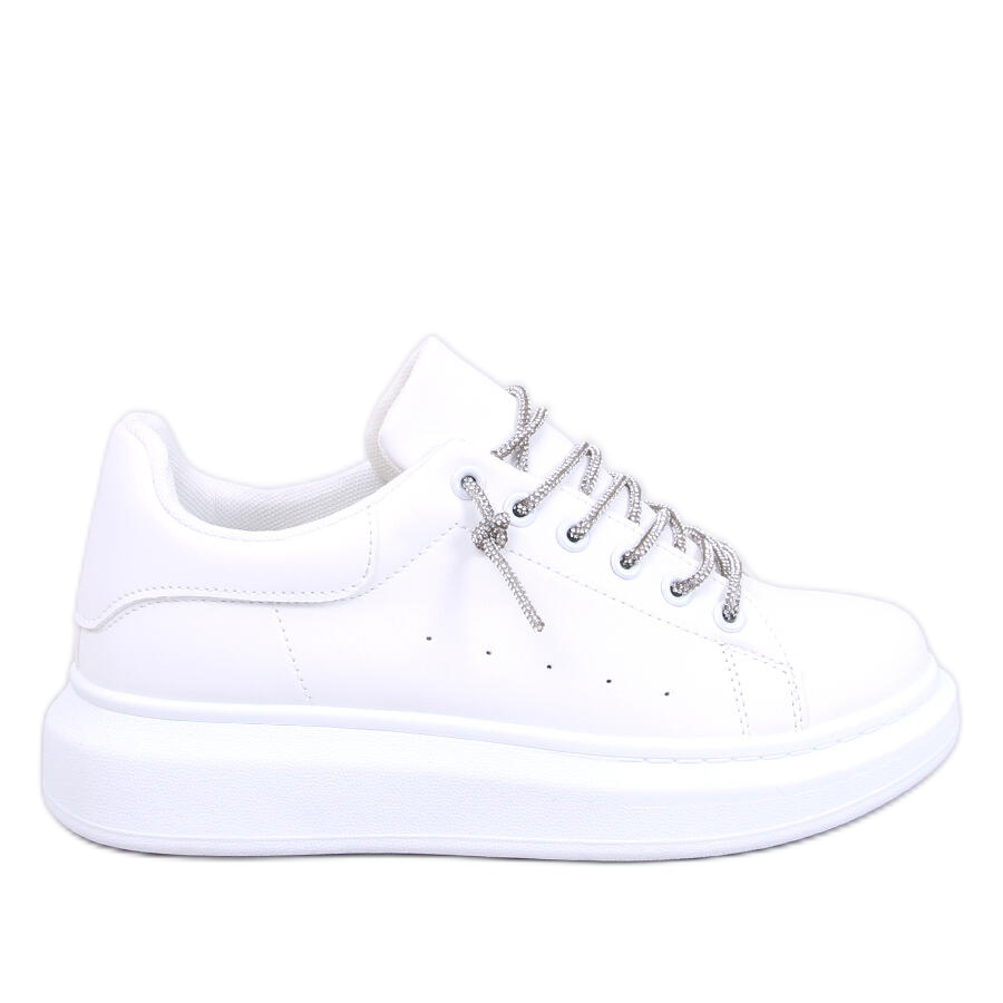 Ti presentiamo le sneakers bianche con lacci di cristallo della serie WHITE/SILVER - una proposta che non dovrebbe mancare nel guardaroba di ogni amante delle scarpe sportive alla moda! Queste sneakers da donna sono un vero successo della stagione, unendo stile e comodità.