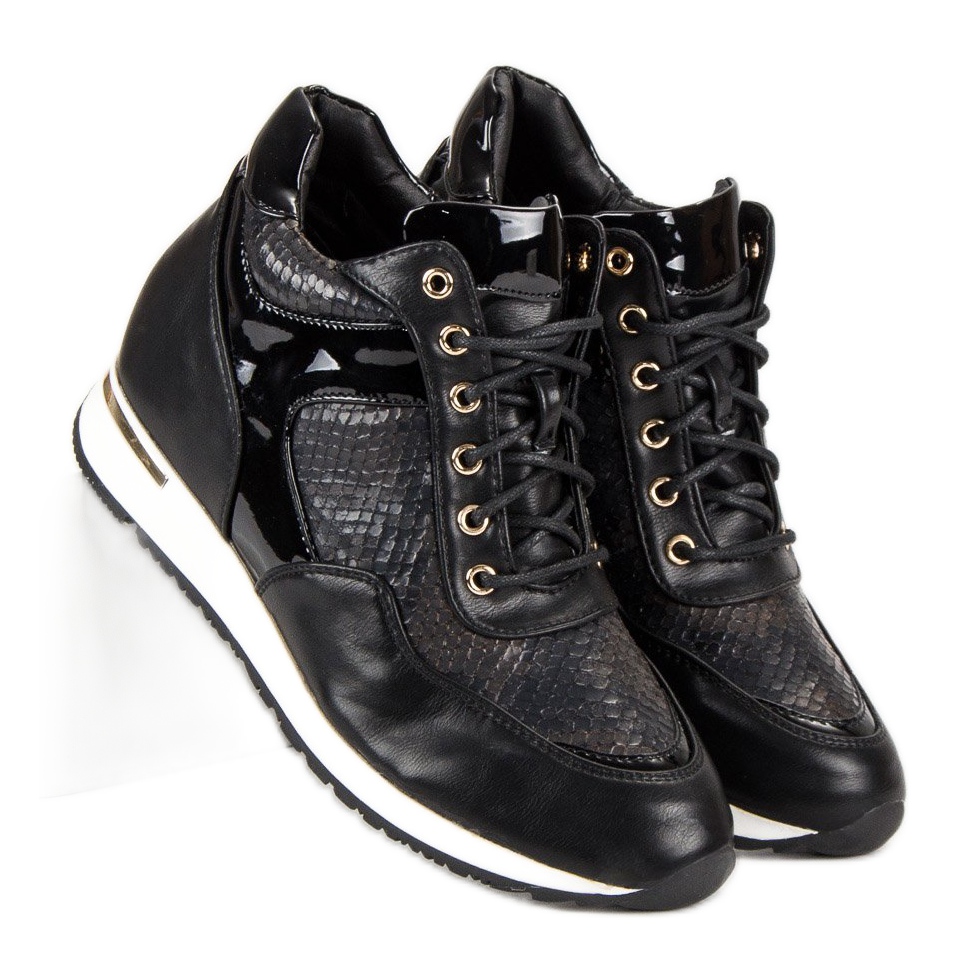 Cerchi le sneakers perfette che uniscano la comodità ad un look alla moda? Le scarpe da ginnastica stringate in nero del produttore J. Star soddisferanno sicuramente le tue aspettative. Queste scarpe eleganti non sono solo pratiche, ma sottolineano perfettamente anche le risorse delle donne grazie alla zeppa nascosta che solleva delicatamente il piede, facendo sembrare le gambe più formose.
