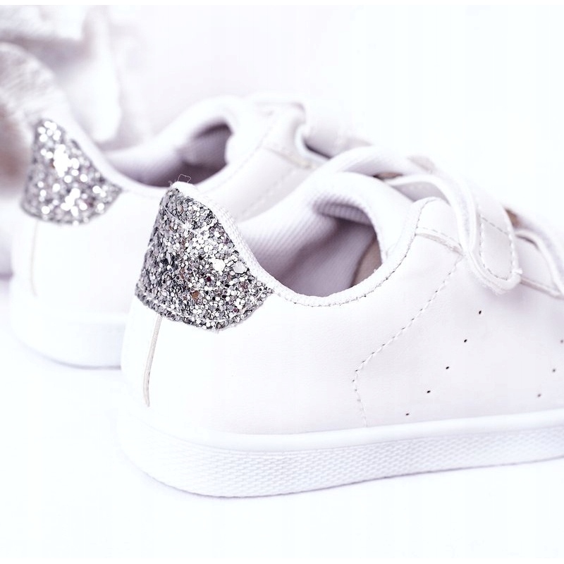 Dettagli: Sneakers con velcro per bambini, bianche e argento bianco