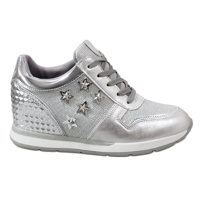 Presentiamo le sneakers con zeppa argento con stelle BM1915-3, che sono una perfetta combinazione di stile e comodità. Prodotte dal marchio Inna, queste scarpe della collezione KeeShoes cattureranno sicuramente l'attenzione di ogni amante della moda.