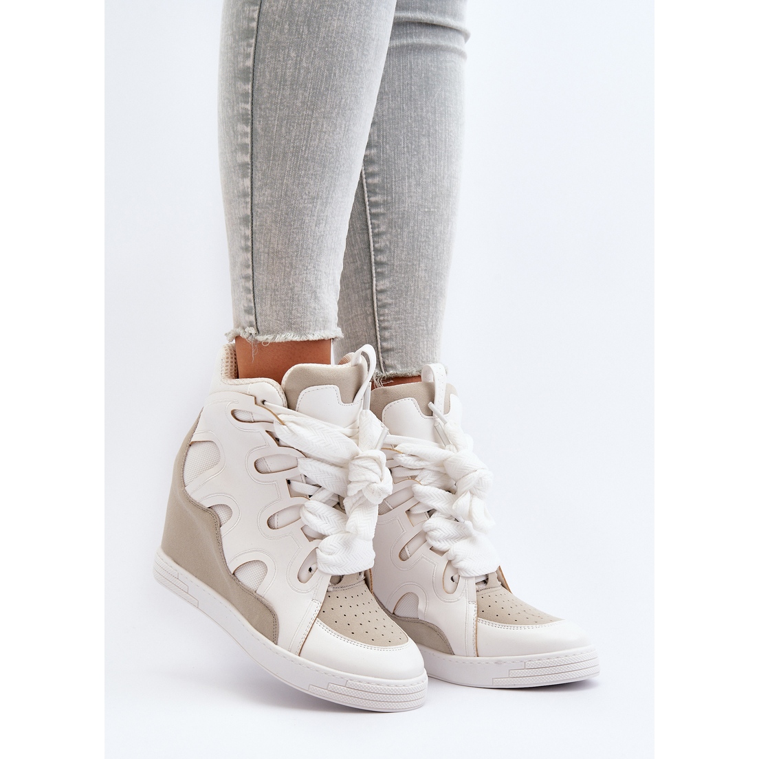 Dettagli: Sneakers con zeppa da donna bianche Leoppa bianco