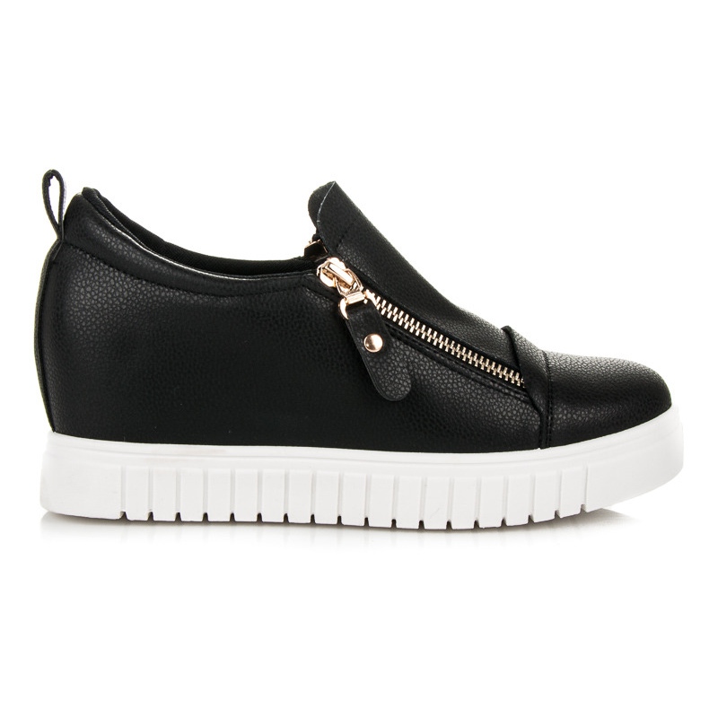 Inoltre, la punta tonda e la cerniera sono soluzioni pratiche che garantiscono comodità e facilità di indossamento. Con uno stile minimalista, senza motivo, le sneakers con zeppa nere si abbinano a molti stili: dai jeans agli abiti. Scegli queste sneakers e crea un look unico che metterà in risalto la tua personalità!