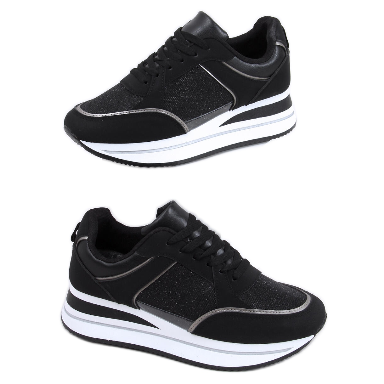 Scopri l'eleganza e la comodità ad ogni passo con le sneakers con zeppa Ivey Black. Queste scarpe sportive nere, con un'altezza della zeppa di 7 cm, sono la scelta perfetta per ogni donna attiva che vuole unire la moda al comfort.