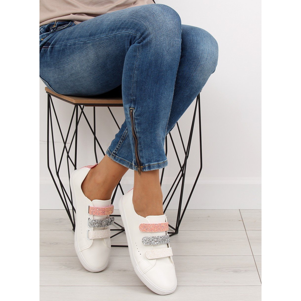 Scopri il perfetto connubio tra stile e comodità con le sneakers da donna BM1978 nei toni del bianco, grigio e giallo! Queste esclusive scarpe in chiusura strappo sono la scelta perfetta per le donne che vogliono apparire alla moda senza sacrificare il comfort. Il classico taglio sportivo è stato arricchito con dettagli accattivanti: strisce glitterate in tre colori, che attireranno sicuramente l'attenzione e aggiungeranno carattere a qualsiasi stile.