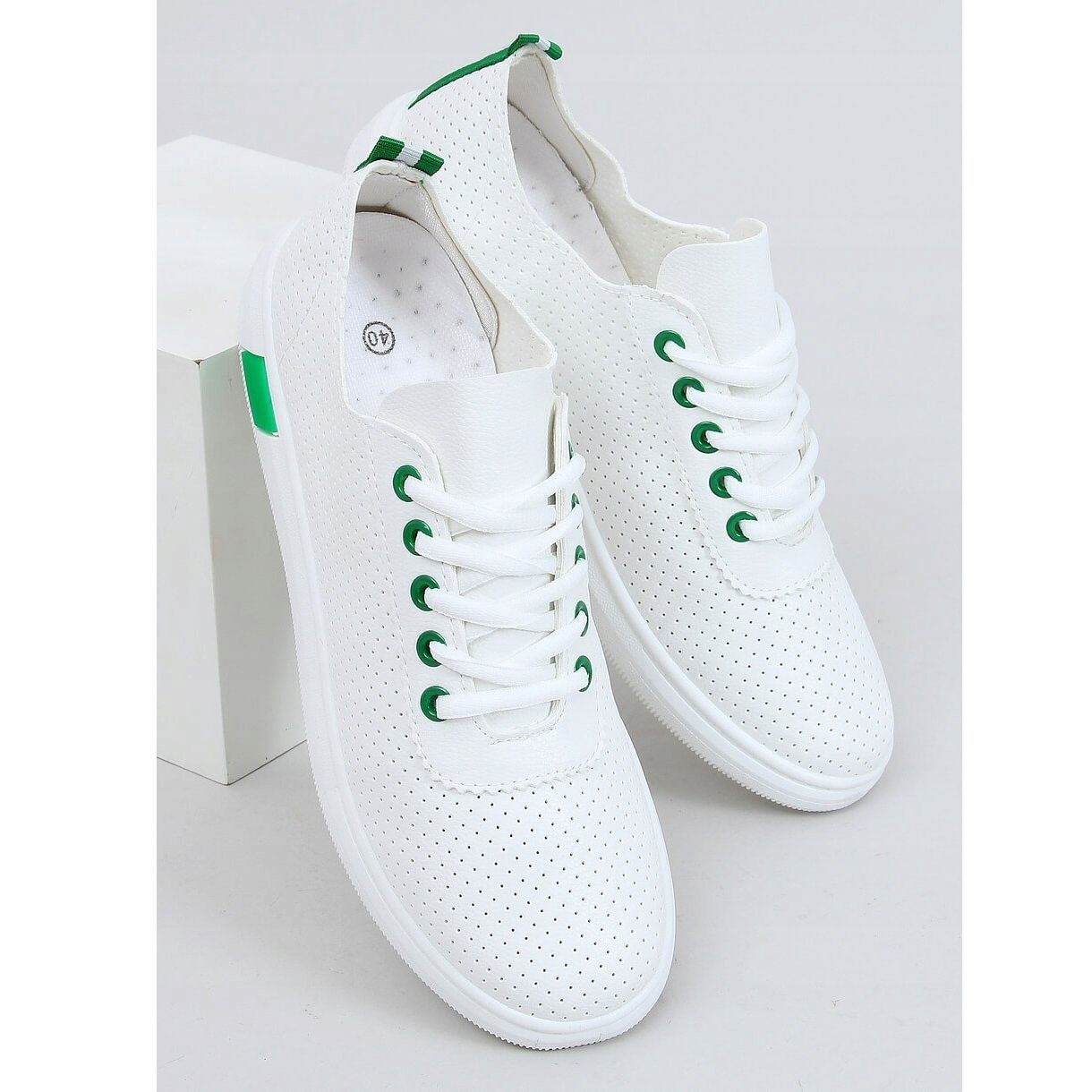 Queste sono le sneakers da donna bianche e verdi LA42 Green, che dovrebbero diventare un elemento indispensabile del tuo guardaroba! Queste scarpe stringate si distinguono per il loro design unico, in cui i passanti per cintura a contrasto e gli eleganti inserti sul retro si abbinano perfettamente all'originale texture traforata dell'ecopelle. Grazie a questo, non solo hanno un aspetto moderno, ma anche "qualcosa" che attirerà l'attenzione.