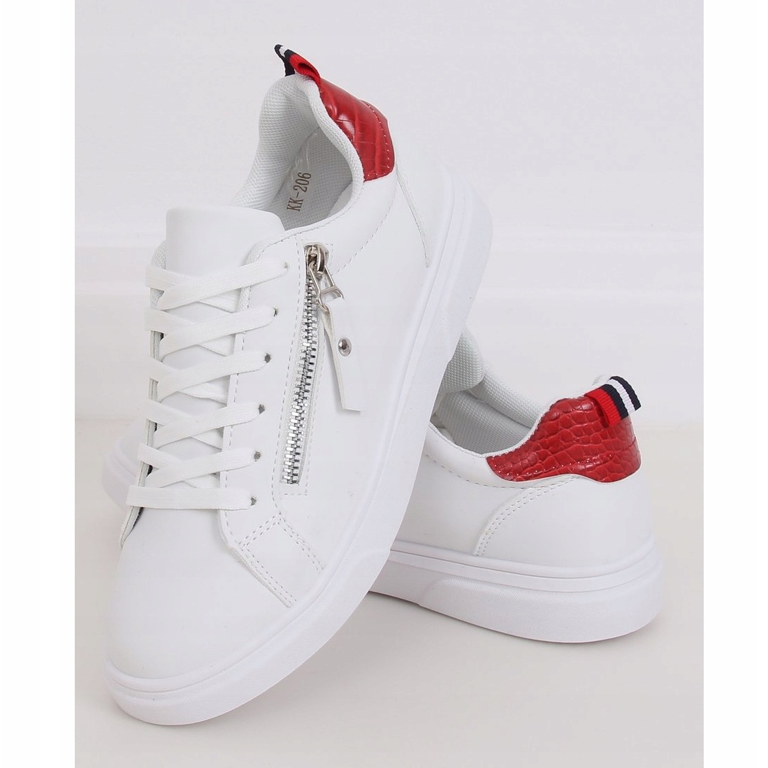 Presentiamo le sneakers bianche da donna KK-206 WHITE/RED in un'accattivante versione rossa, che si adatta perfettamente alle ultime tendenze della moda urbana. Queste sneakers stringate sono una combinazione di classici e accenti moderni che attireranno sicuramente l'attenzione.
