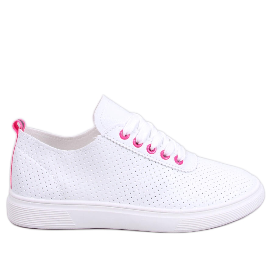 Gelman White/Fuksja Sneaker femminili - bianco con accenti rosa che attirano immediatamente l'attenzione. Le scarpe basse e basse con un naso rotondo combinano uno stile e un comfort casual - perfetti ogni giorno, una passeggiata per la città o incontrarsi con gli amici.