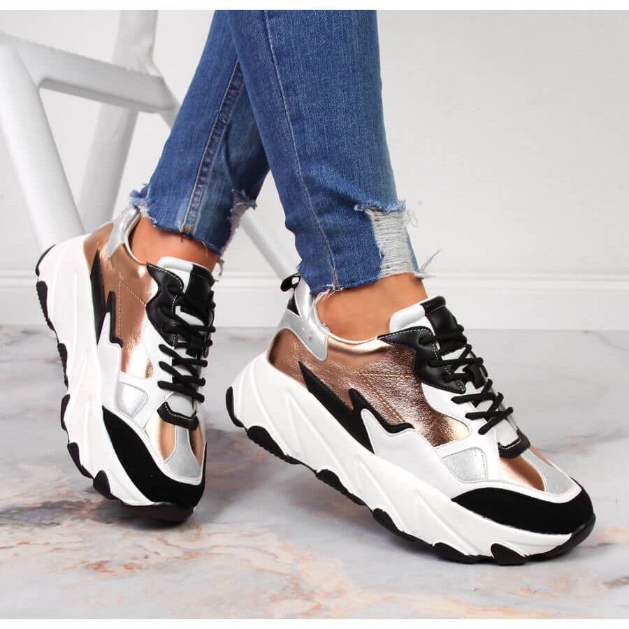 Dettagli: Sneakers da donna sulla piattaforma Potocki bianca e oro bianco d'oro