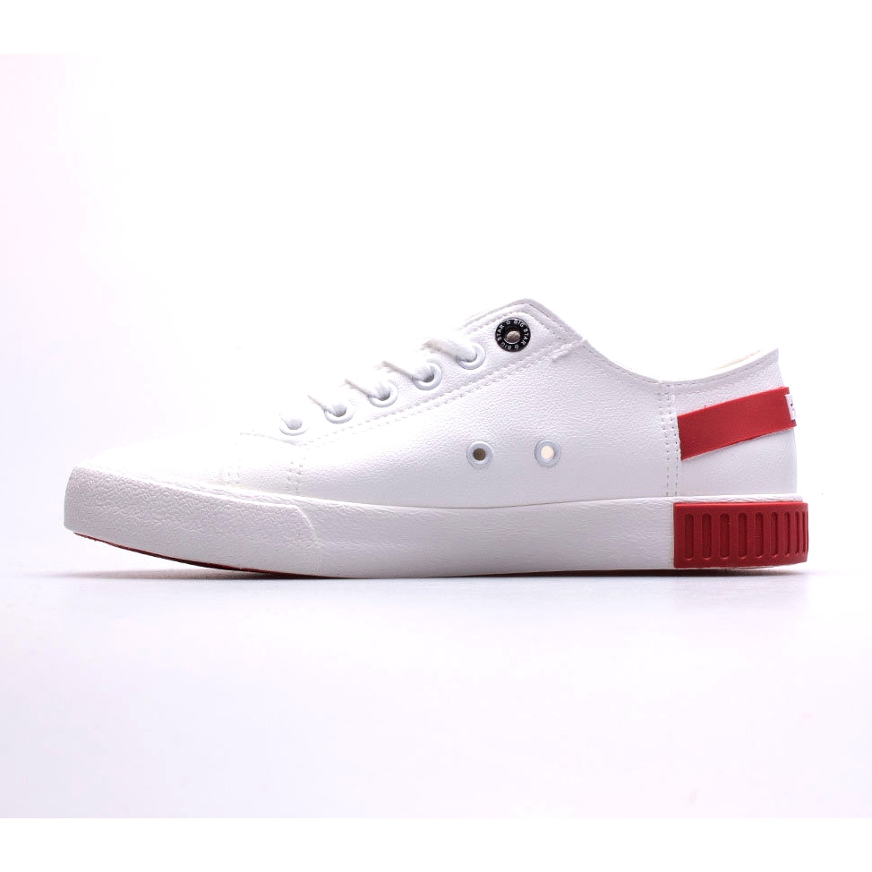 Il nuovo modello di sneaker da stella femminile - classica, confortevole ed elegante. Realizzato in pelle ecologica in Universal White, con un caratteristico tacco rosso con la Big Star di iscrizione, che dà loro un accento alla moda. L'inserto morbido e materiale offre comfort anche con un consumo più lungo e la bloccaggio classico ti consente di adattarsi al piede.