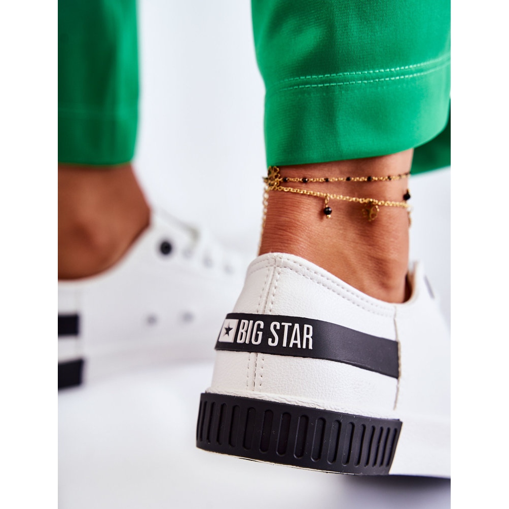 Queste affascinanti sneakers bianche sono realizzate in pelle ecologica di alta qualità. Prendendosi cura di ogni dettaglio, i designer di Big Star assicurano che l'ecopelle non solo abbia un bell'aspetto, ma sia anche durevole e di facile manutenzione. Sul retro della scarpa si trova un elegante tacco nero con una discreta scritta Big Star, che aggiunge un carattere sportivo al tutto.