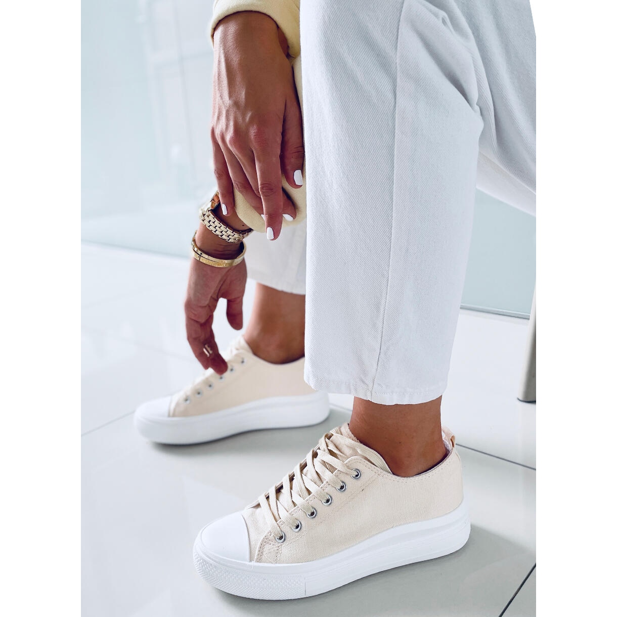 Le sneakers da donna Ebbe Beige sono la scelta perfetta per le donne che vogliono unire lo stile alla comodità. Queste sneakers stringate dall'elegante colore beige attirano l'attenzione con il loro design classico, e la suola alta, che misura 4 cm, dona originalità e gusto.