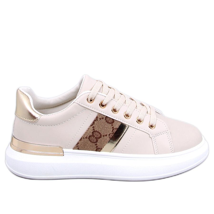 Le sneakers da donna Hinds nella tonalità del beige sono la scelta perfetta per le donne che vogliono unire comfort e stile alla moda. Queste scarpe sportive glamour attirano l'attenzione con il loro design elegante, arricchito da diversi accessori color oro che donano loro un carattere unico.