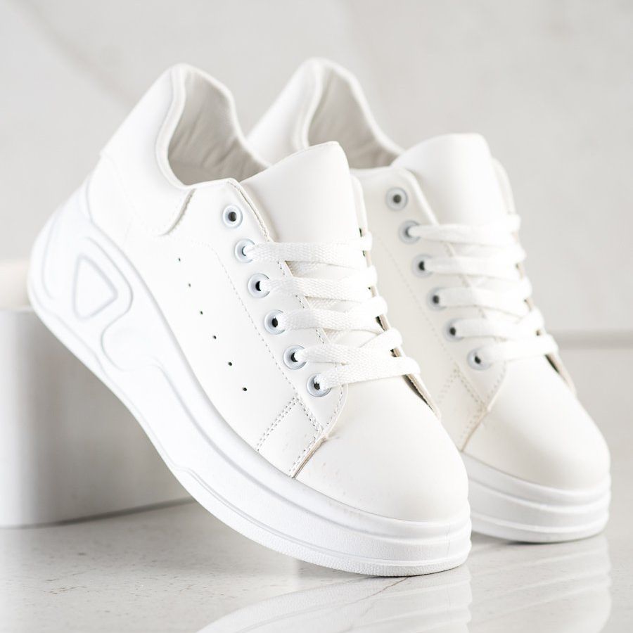 SHELOVET Eleganti sneakers in ecopelle in bianco sono la scelta perfetta per le donne che apprezzano sia il comfort che l'aspetto alla moda. Queste classiche scarpe sportive con plateau di 5 cm uniscono le ultime tendenze al comfort quotidiano, rendendole le compagne perfette di tutti i giorni.