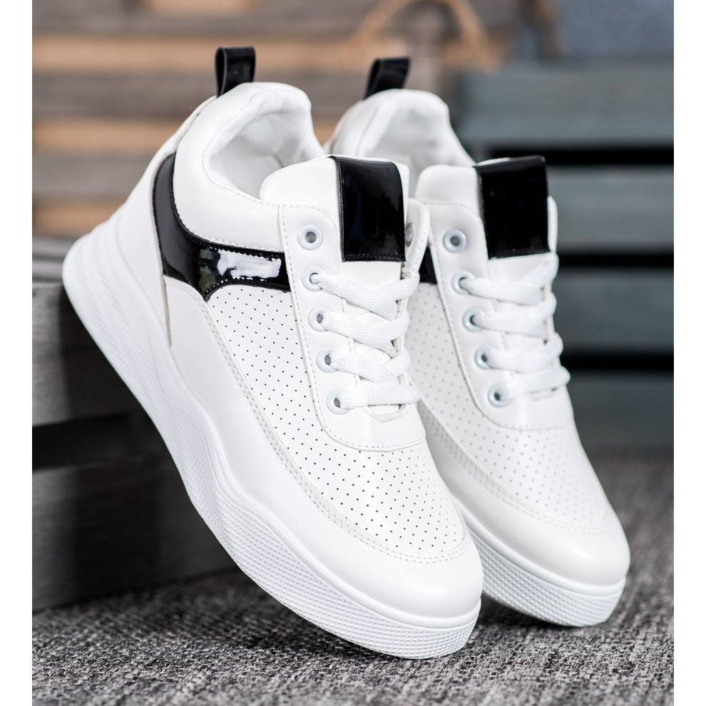 Le sneakers Renda realizzate in ecopelle di colore bianco sono un must nel guardaroba di ogni donna. Queste scarpe eleganti e moderne combinano un design alla moda e un comfort eccellente, che le rende perfette sia per l'uso quotidiano che per le occasioni speciali. Caratterizzate da un'accattivante striscia nera lucida, le sneakers attirano l'attenzione e aggiungono un carattere unico ad ogni styling.
