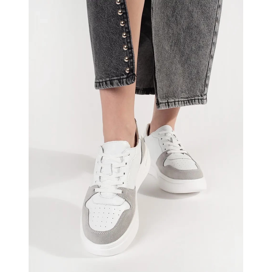 Il fissaggio sotto forma di allacciatura consente l'adattamento individuale al piede, il che aumenta ulteriormente il comfort di indossare. Sneaker in pelle bianca Goodin è un must nel guardaroba di ogni donna moderna che vuole apparire elegante e sentirsi a proprio agio ogni giorno.
