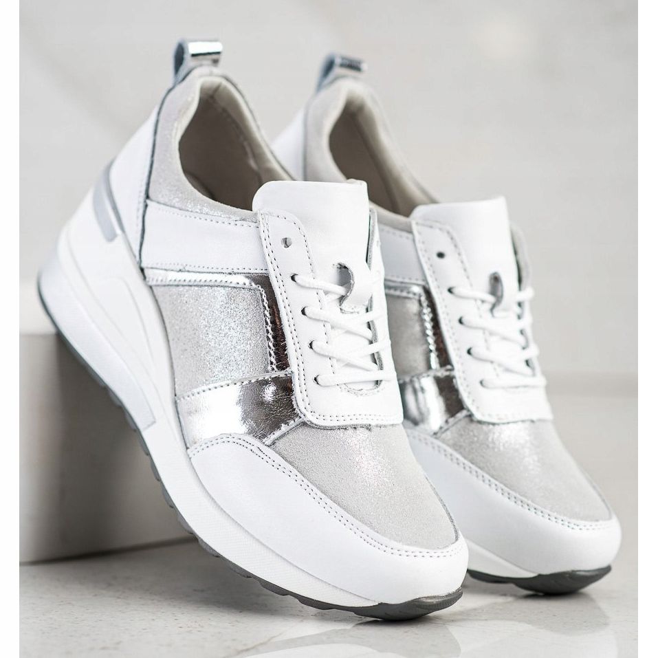 Le sneakers VINCEZA in pelle con glitter in bianco e argento sono un must in ogni guardaroba alla moda. Queste impressionanti scarpe, firmate dal marchio Vinceza, combinano lo stile sportivo con un po' di lucentezza, grazie alla spolverata di glitter che brilla meravigliosamente alla luce. Realizzati in pelle naturale di alta qualità, garantiscono una perfetta aderenza al piede, che si traduce in comfort da indossare tutti i giorni.