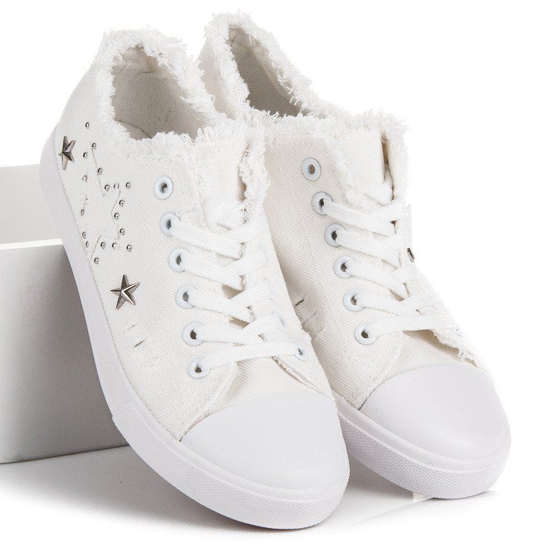 Scopri la sottile eleganza delle sneakers in tessuto bianco che saranno il complemento perfetto per qualsiasi stile. Queste scarpe uniche sono caratterizzate da una tonalità nevosa e da una finitura unica intorno alla caviglia, che conferisce loro un fascino da ragazza. Decorazioni a forma di delicati pois e stelle fanno risaltare le sneakers pur mantenendo uno stile minimalista.