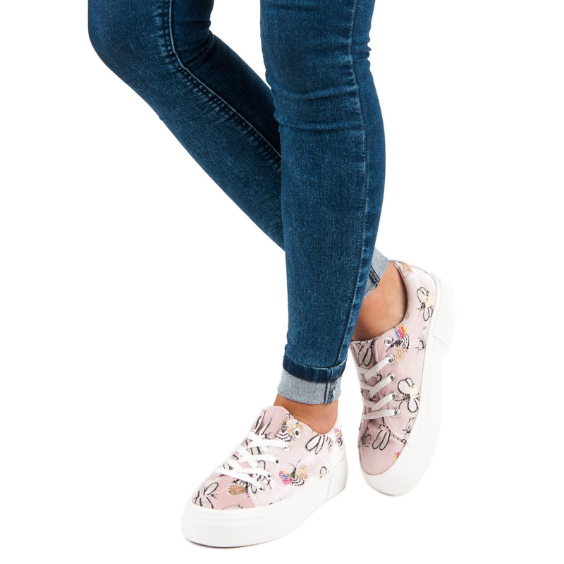 Presentiamo le affascinanti sneakers con plateau rosa e bianche del marchio Kylie. Queste scarpe uniche presentano un favoloso motivo a insetti colorato, che le rende un modo perfetto per ravvivare qualsiasi stile. Indipendentemente dall'età, ogni donna ne apprezzerà il design originale e la comodità d'uso.