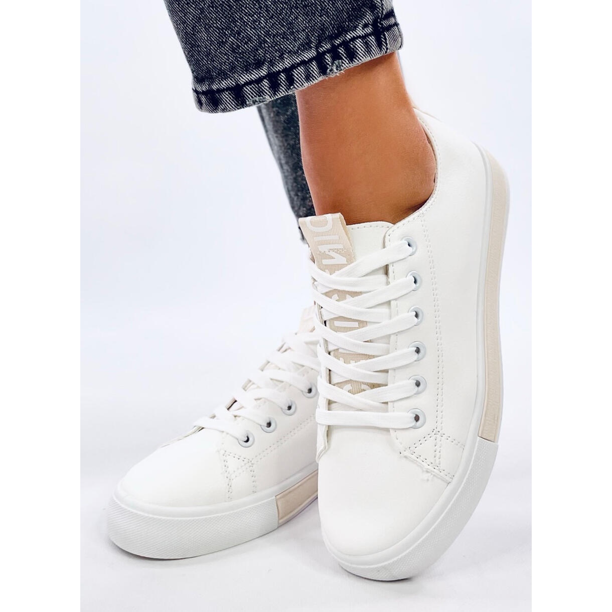 Scopri la combinazione perfetta di stile e comfort con il beige delle donne in bianco! Queste sneaker in pizzo si distinguono per un design classico e aggiunte contrastanti che aggiungeranno il carattere di ogni stilizzazione casual. Realizzati in pelle ecologica di alta qualità, non solo offrono un aspetto attraente, ma anche un comfort di usura unico.