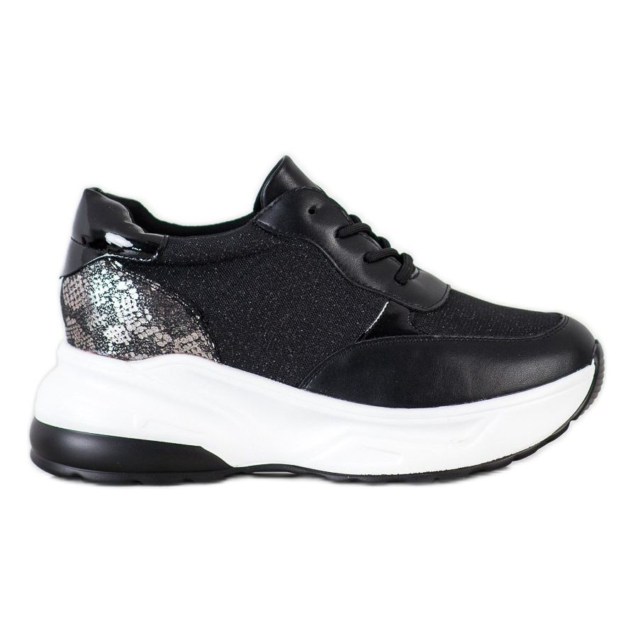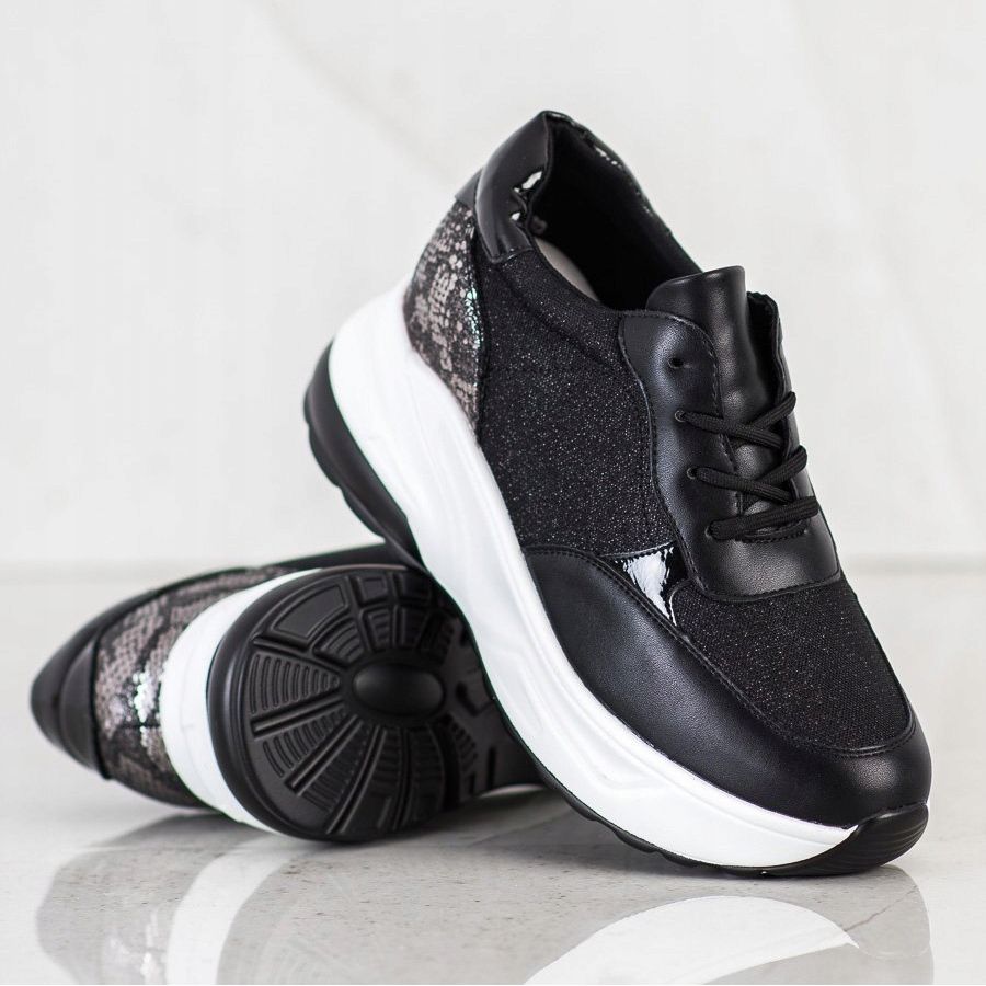 Le sneakers nere con glitter del produttore Bestelle sono la scelta perfetta per le donne che vogliono combinare il comfort con una finitura elegante. Queste scarpe nere uniche, arricchite con glitter argento, attireranno sicuramente l'attenzione e enfatizzeranno lo stile individuale di ogni donna che le indossa.